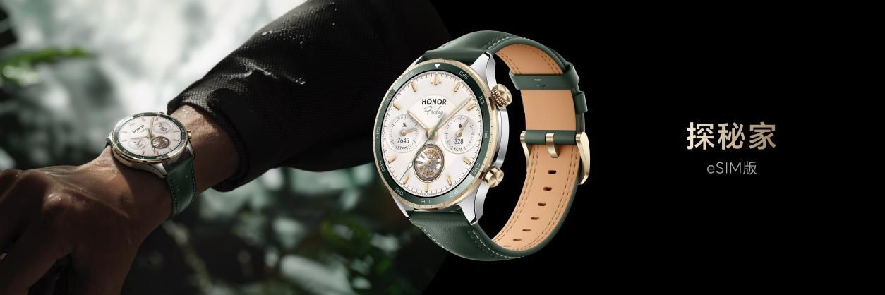 荣耀手表5 Pro以挑战极境为灵感,致敬人类突破自我、探索未知的精神,传承经典设计中的极致工艺,结合腕表中的经典美学,展现出极致美感与当代科技相互融合的独特魅力。新品共有eSIM和蓝牙两个版本五种配色可选,其中探秘家打破传统智能手表材质边界的同时,创新融合真金镀层表圈与纳米微晶陶瓷内圈双材质,在光影交错间呈现出细腻的质感层次与轻奢光泽,时尚又不失优雅。