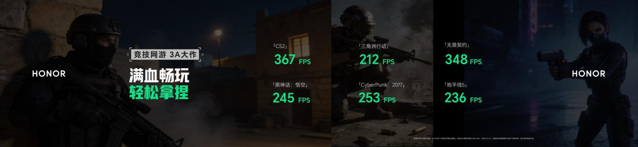 荣耀WIN游戏本 H9凭借全新Gaming Turbo X技术,实现全域性能调优、整机动态超频,在游戏体验上全方位升级,为玩家带来最强“打洲本”体验。在开启Gaming Turbo X技术后,荣耀WIN游戏本 H9可实现《三角洲行动》212 FPS,《黑神话·悟空》245 FPS,《赛博朋克2077》253 FPS。