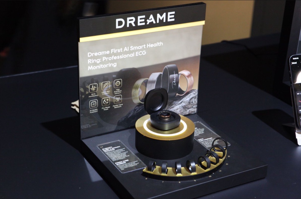 追觅“震动智能戒指”内置厚度小于2.5毫米的超微型震动马达,在保证清晰震感反馈的同时,兼顾佩戴舒适性与低功耗。Dreame AI 健康智能戒指24小时监测心率、血氧、体温、呼吸频率、睡眠结构,更有ECG心电图趋势监测,为用户打造专属个人健康助手。