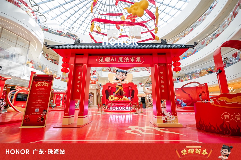 目前,珠海斗门万达广场中庭举办的荣耀AI魔法市集活动,从即日起持续至2月16日,诚邀广大消费者参与体验!同时,全国各大荣耀门店火热开展魔法科技年货节活动,更多惊喜优惠等待你来发现。这个新年来荣耀,与“哪吒”一起嗨FUN中国年,共同见证中国荣耀!