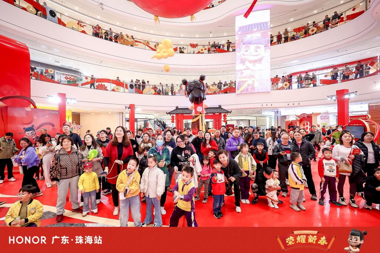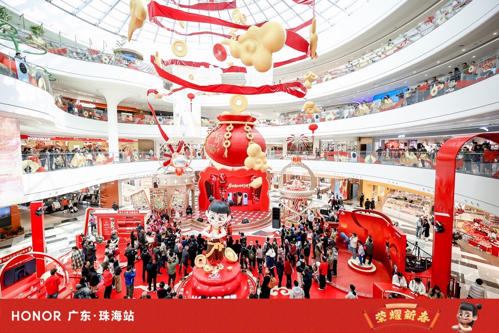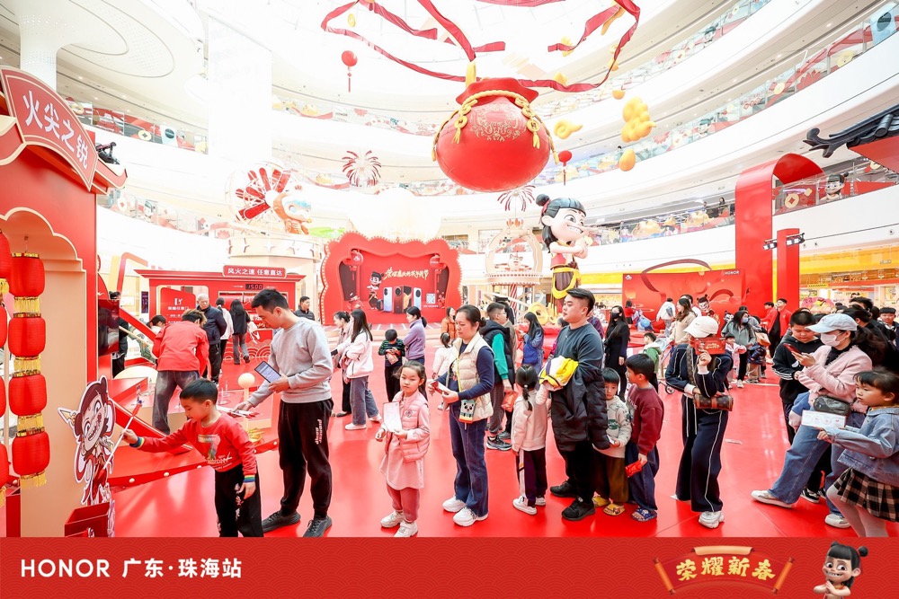 1月18日,荣耀新店在珠海斗门世荣万达广场开业,并携手春节大片《哪吒之魔童闹海》,在珠海斗门万达广场中庭盛大开启荣耀AI魔法市集快闪活动。以市集互动、现场演出、好礼抽奖等丰富环节,巧妙融合科技“魔法”与传统文化,为市民带来一场充满科技感与年味的沉浸式魔法体验。
