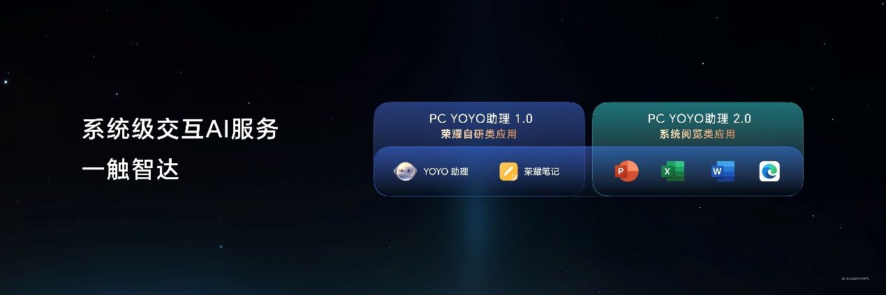 在AI使能的人机交互层面,YOYO助理进化到2.0版本。依托端侧的荣耀魔法大模型基座,YOYO智能体深度聚焦搜索、阅览、创作、智控四大核心场景,带来更智能、更易用、更开放、更AI的全新交互体验,打造更懂你的AI PC。