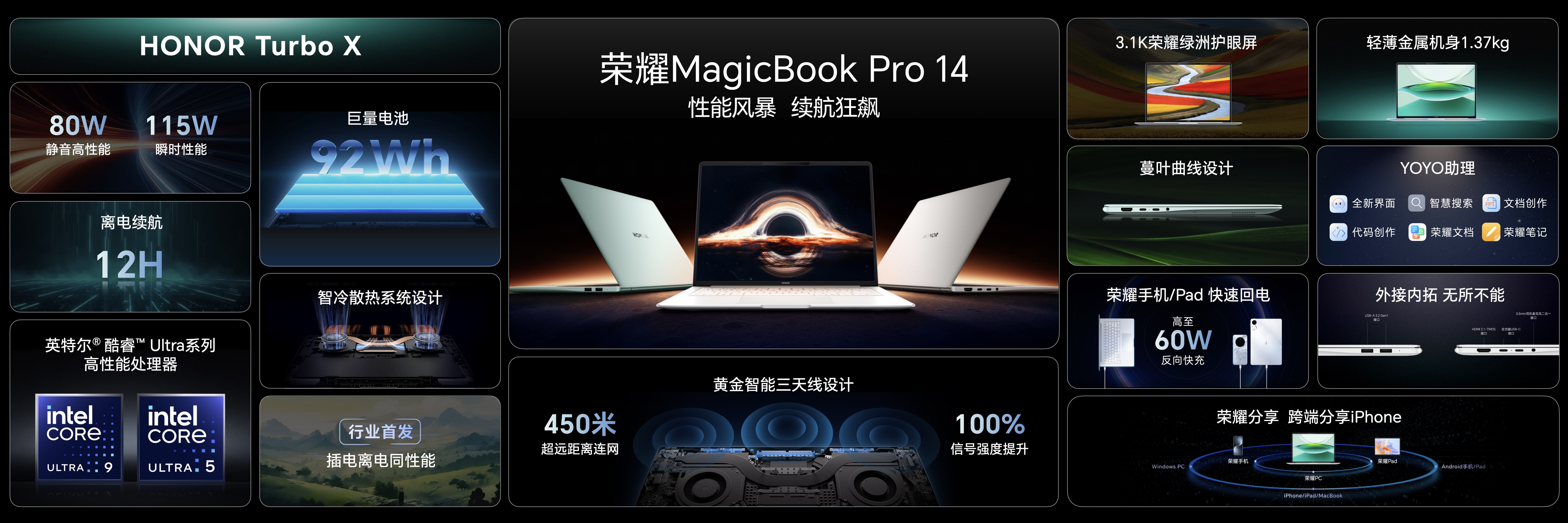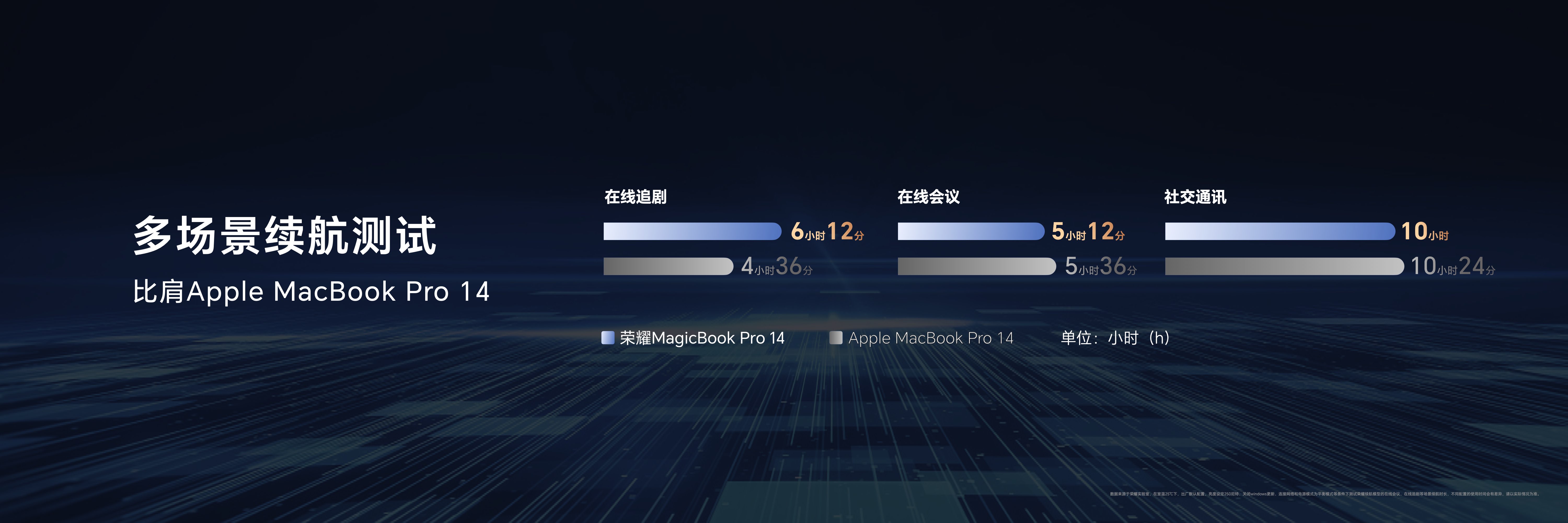 以MagicBook Pro 14为例,其搭载英特尔酷睿Ultra第二代处理器,性能释放达80W,同时配备92Wh巨量电池,实测续航超12小时,首次让x86笔记本续航比肩MacBook Pro 14。此外,行业首创的“离电插电同性能”设计,彻底消除了用户对电源依赖的焦虑。