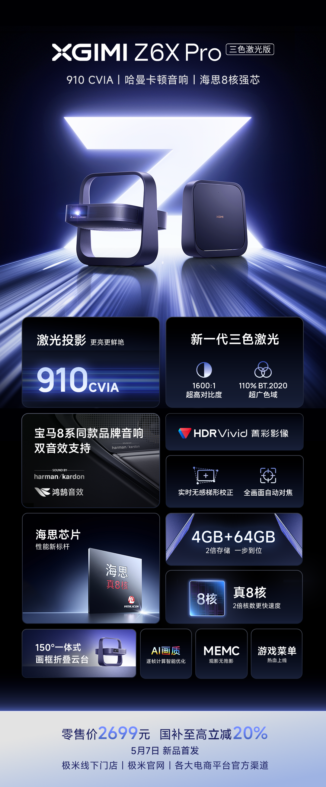 智能投影领军品牌极米科技旗下Z系列产品,全球累计销量突破300万台!5月7日,极米科技推出革新力作Z6X Pro三色激光版,将三色激光光源、海思真8核高性能芯片与150°画框云台深度融合,重新定义轻薄折叠投影“天花板”。用技术革新引领行业发展,重构家用投影生态。