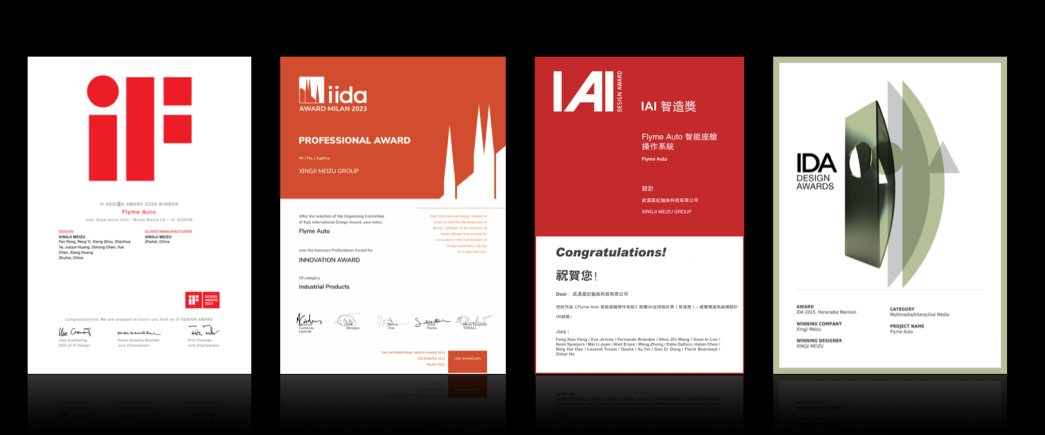 Flyme Auto 的卓越表现也赢得了行业的高度认可。作为首个通过泰尔终端实验室 “车载智能终端流畅性能认证” 的智能座舱系统,它在技术性能上备受肯定。此外,Flyme Auto 还摘得了iF、iida、UX DESIGN Award 等多个国际顶级设计大奖,并斩获2024年《财经》长青奖 “年度最具价值车机奖”、智驾网 “2025年度智能座舱奖” 等荣誉,这些奖项无疑是对 Flyme Auto 在设计、功能、用户体验等多方面杰出表现的有力证明。