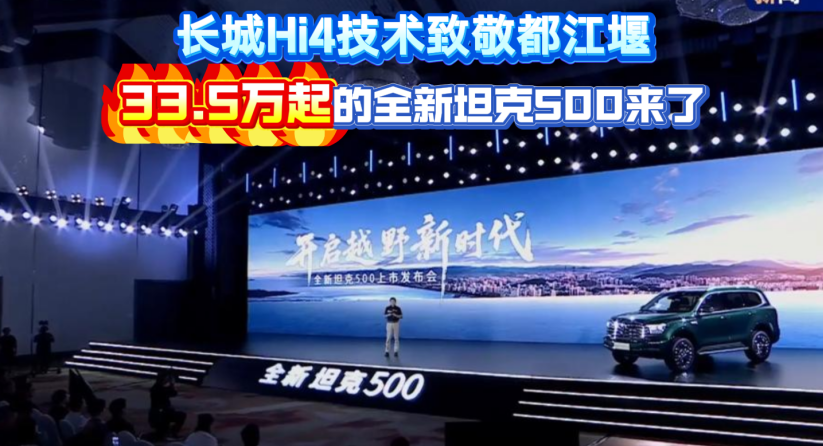 长城Hi4技术致敬都江堰,33.5万起的全新坦克500来了!8月27日,长城汽车于世界文化遗产都江堰举办了全新坦克500上市发布会,此次活动也是央视新闻《首屈一指》栏目的一场特别直播,主持人王宁与长城汽车董事长魏建军进行...