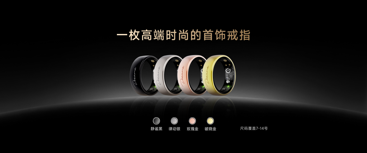 追觅戒指Glow兼顾科技实力与时尚属性,尺码覆盖7-14号,推出静谧黑、律动银、破晓金、玫瑰金四款配色,适配商务简约、运动时尚、轻奢精致等多种风格,可无缝适配日常通勤、户外运动、正式场合等全场景,既是硬核健康设备,也是高端百搭的时尚首饰,真正实现科技融入生活,颜值与实力并存。