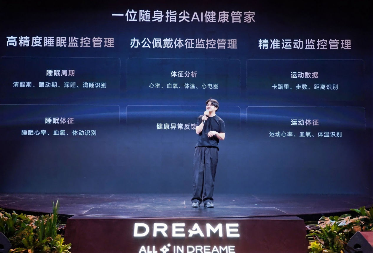 发布会上,追觅全球AI硬件事业群总裁潘志东发表主题演讲,与现场媒体、合作伙伴及消费者共同见证AI智能穿戴赛道的全新里程碑,同时深度解读了追觅在智能穿戴领域的研发理念与产品核心优势。潘志东表示:“我们始终秉承‘所有的硬件都值得用AI重新做一遍’的理念,深耕用户核心痛点,致力于打造好看、好用、耐用,能让AI真正服务于人的好硬件产品。此次发布的追觅戒指Glow,是我们在AI健康穿戴领域的又一次颠覆性突破,旨在用‘戒指+AI’的创新模式,打破专业健康管理的高门槛,让人人都能轻松拥有专属的指尖健康管家。”
