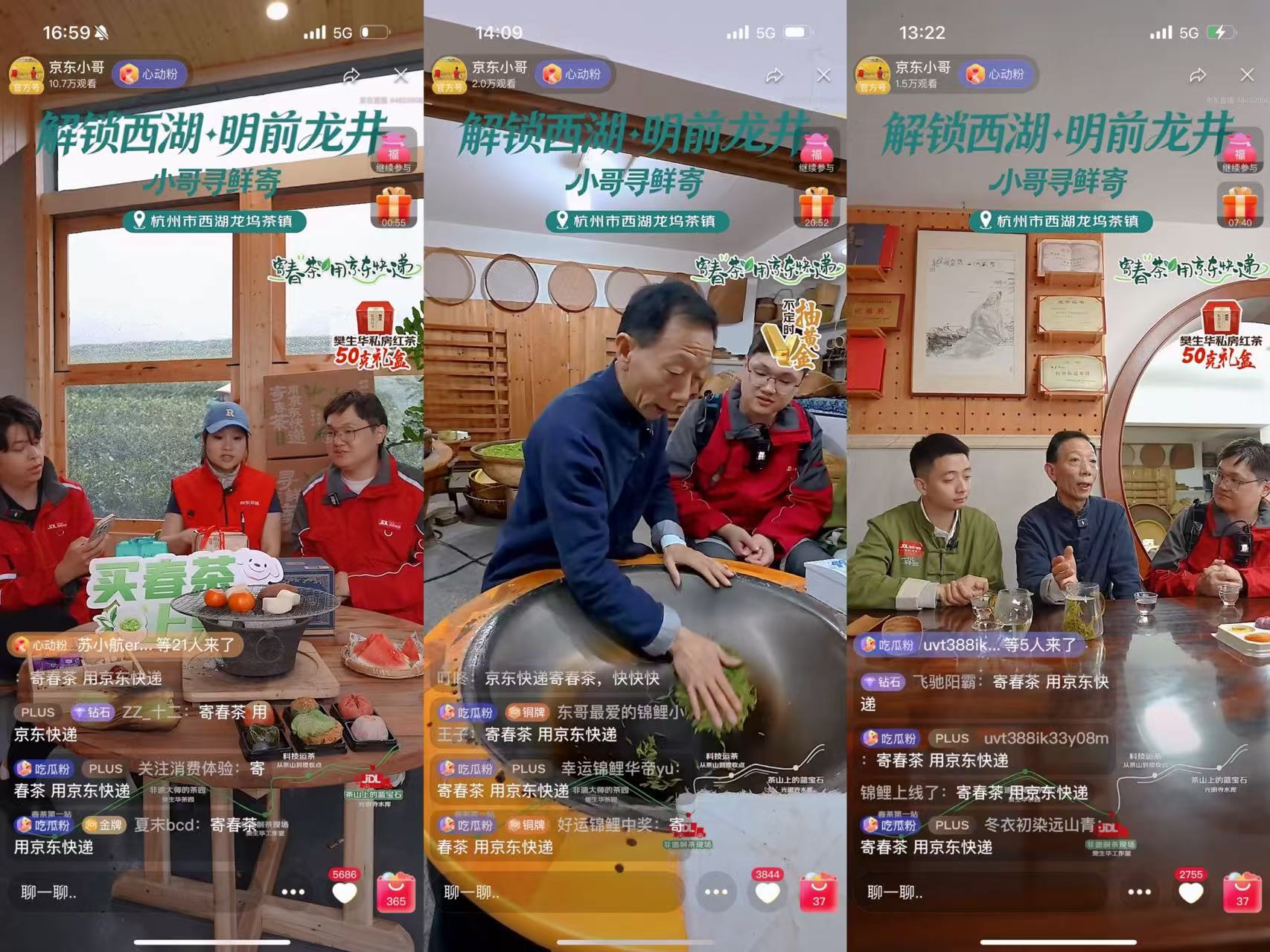 物流提速的同时,产地直播也在发力。今年,京东快递持续走进全国各大春茶主产区开展溯源直播。在西湖龙井产区,京东快递更是携手国家级非物质文化遗产西湖龙井制作技艺传承人樊生华,开启专场直播。直播中,樊生华现场展示手工炒茶的精湛技艺,详细讲解西湖龙井的品质鉴别技巧;京东物流工作人员则同步拆解春茶全流程,从茶山采摘、机器狗接驳,到无人车转运、全国配送,让消费者直观看到春茶的“诞生到送达”之旅,既帮助消费者精准识别正宗西湖龙井,也为产区茶农拓宽了销售渠道。