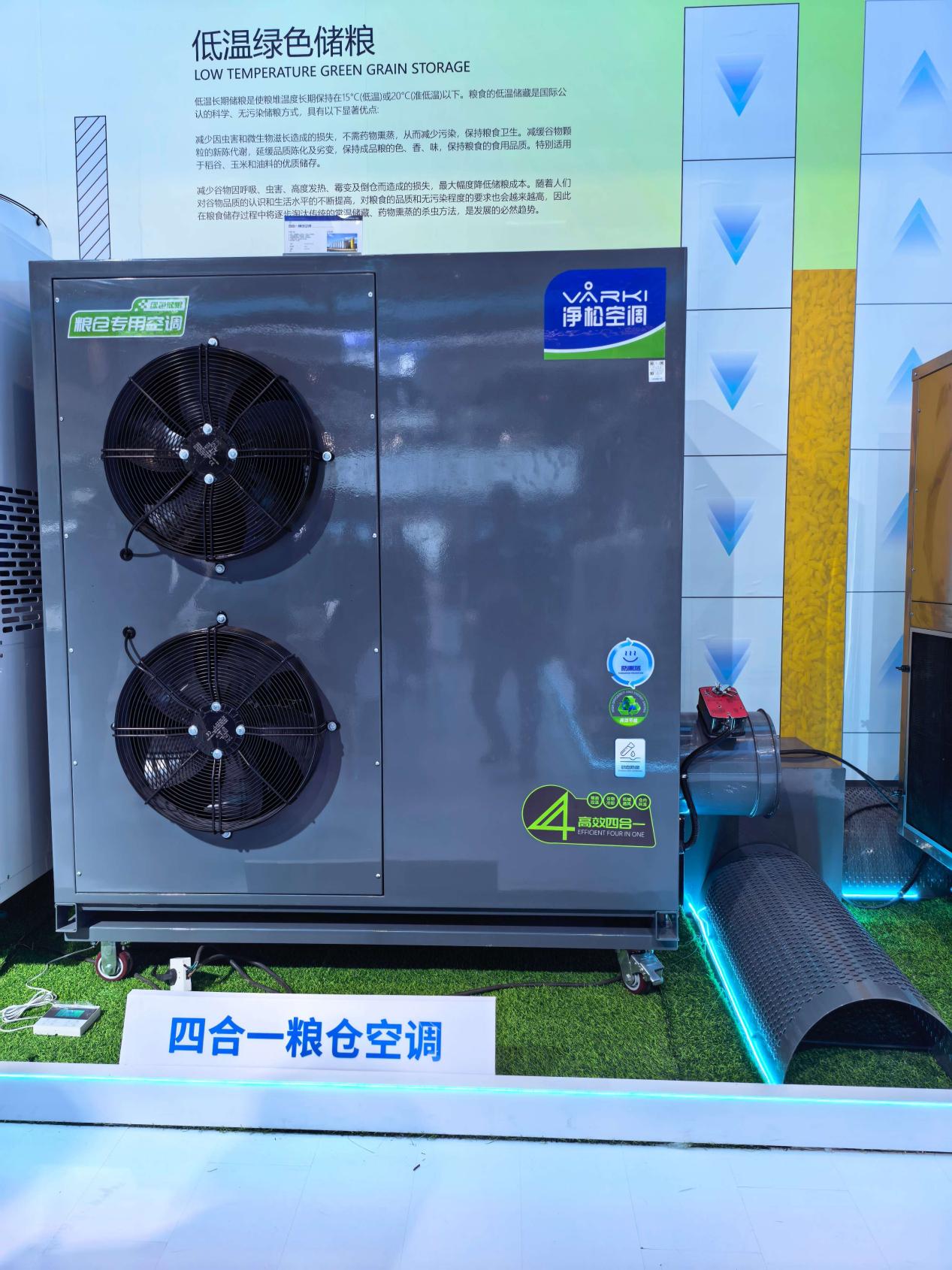在粮农仓储这一关乎国家粮食安全的专业赛道,江苏净松环境科技有限公司携变频四合一粮仓空调重磅登场。这款产品将粮面控温、谷物冷却、机械通风、内环流四大功能融为一体,标志着粮仓温控设备从单一功能向集成化智能控制的关键跃迁。