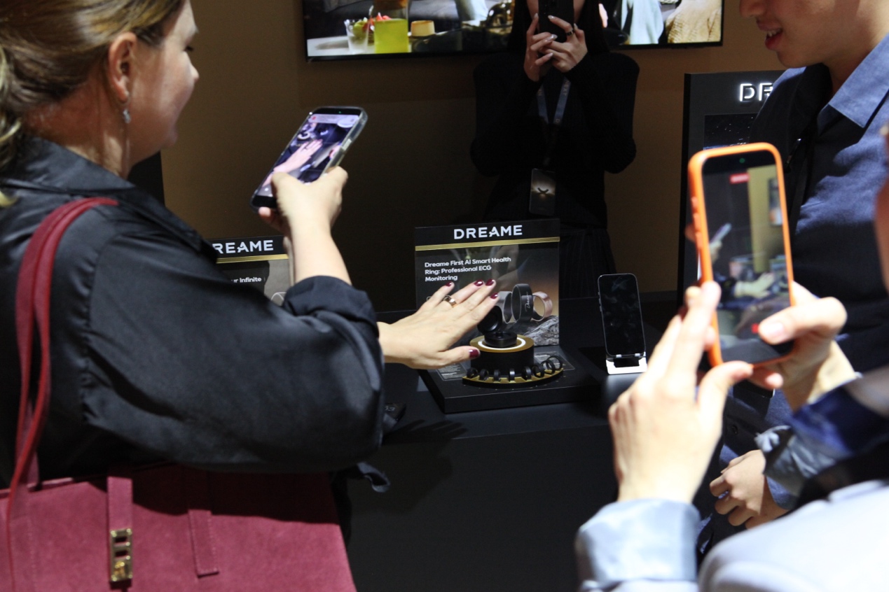 (图:追觅AI智能戒指展台前观众在试戴拍照)